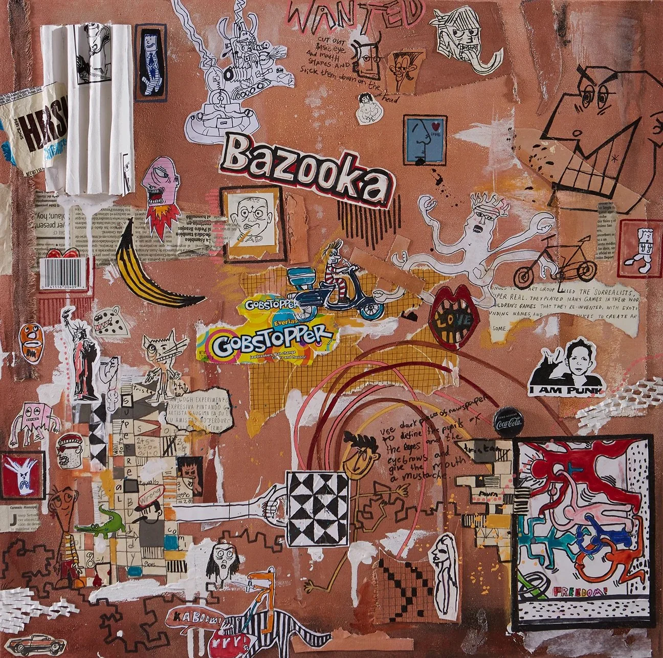 Acrylic, oil sticks and collage.
