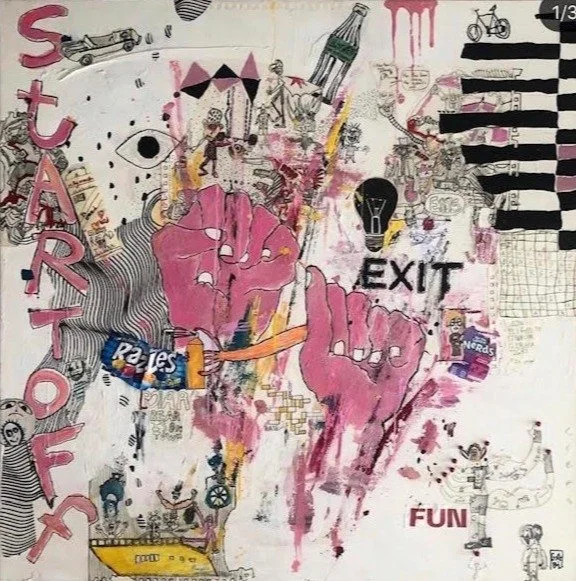 Acrylic, oil sticks and collage.